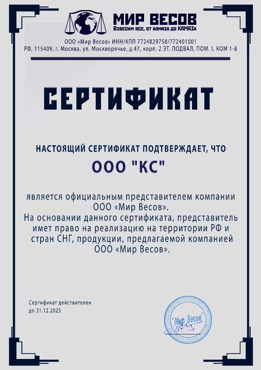 Свидетельство о внесении в национальный реестр надёжных поставщиков