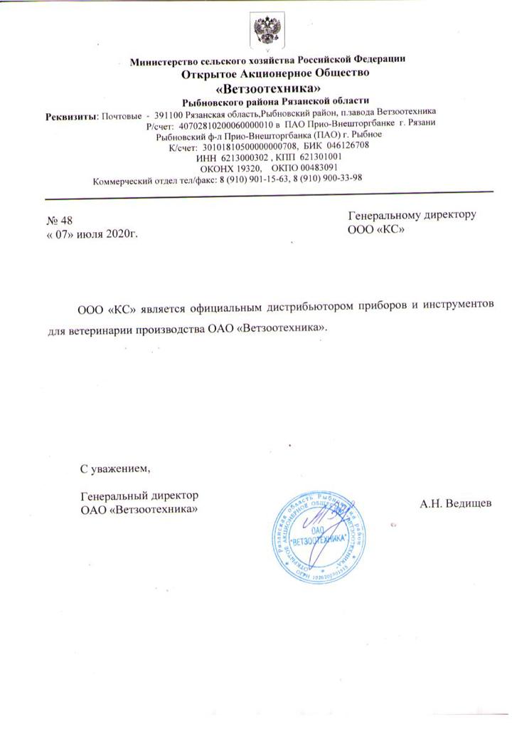 Авторизационное письмо ООО «Аврора ЛАБ»